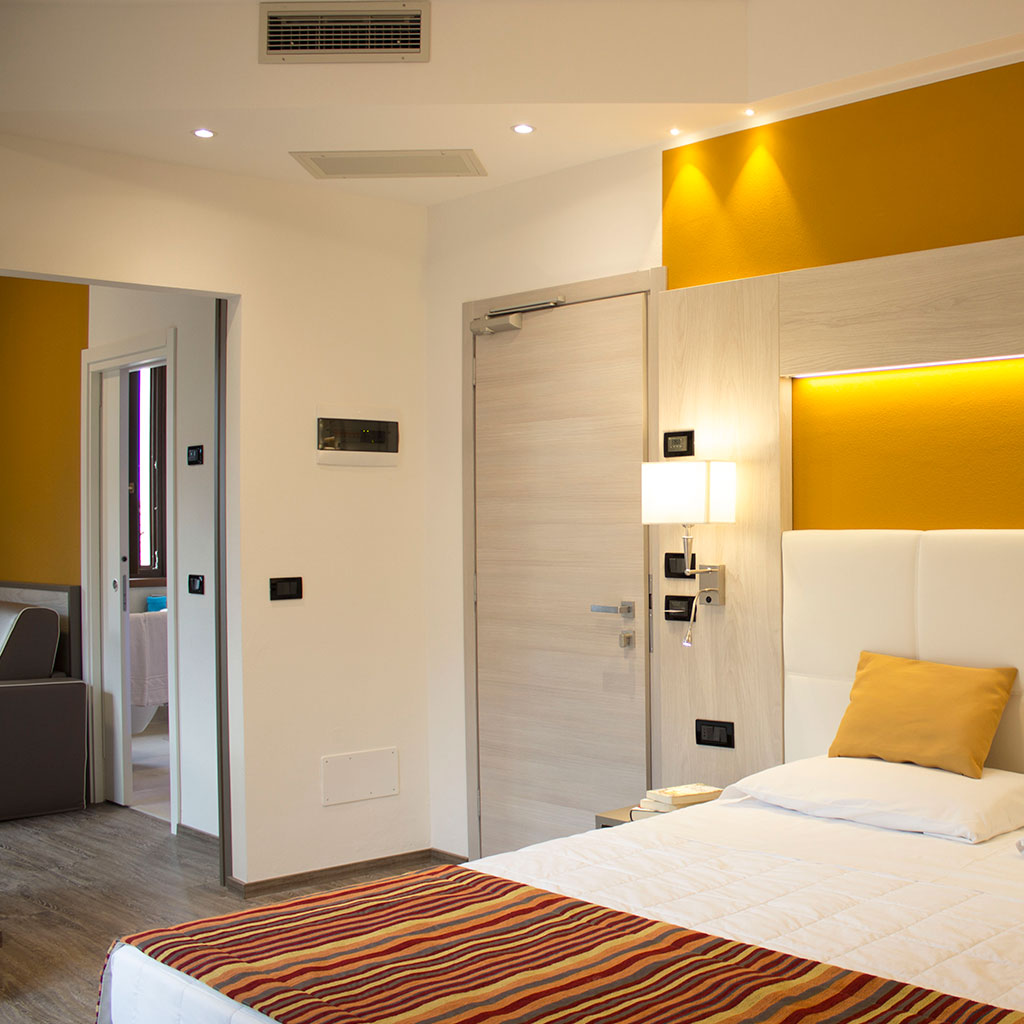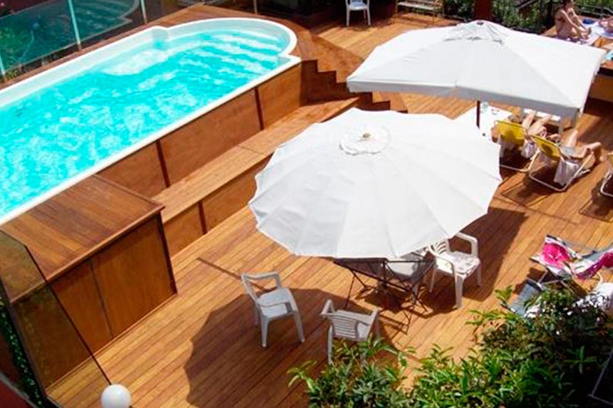 We have created a Solarium Terrace with Swimming Pool on the mezzanine floor of the Hotel, thus carving out a body of water for a few hours of coolness and relaxation, among the houses in the center and in front of the Baldo massif.