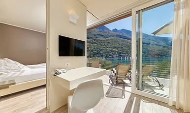 The hotel has a lot of sport and leisure offerings: mountain biking, hiking, swimming, sailing, surfing… or, a cable car ride to Monte Baldo, or a visit to beautiful nearby cities of art. The hotel also has a boat dock and buoys for private moorings. And for those who want to be lazy… relax on the beach!