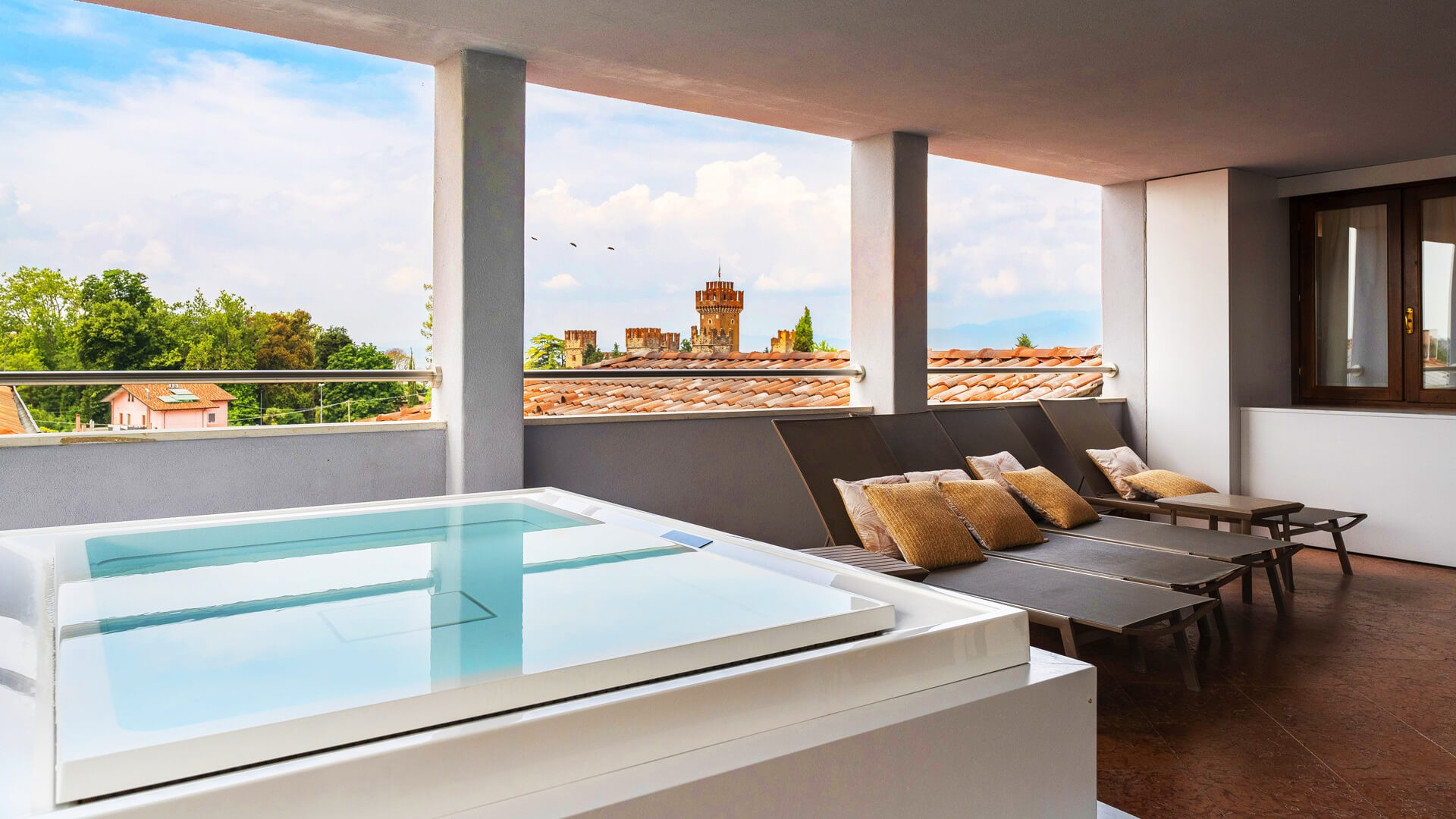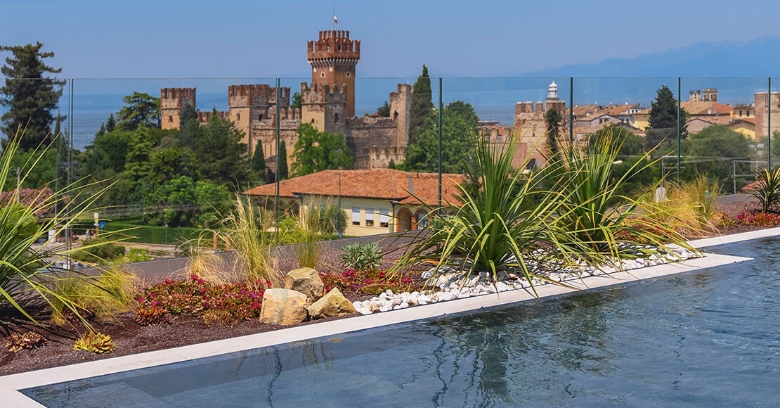 Surrounded by the quietness of the moraine hills and the medieval atmosphere of Lazise, let yourself be charmed by the gentle landscape of Garda Lake, cuddled by the welcoming and qualified staff of our 4-star hotel in the centre of Lazise. Refined suites and a spectacular garden with heated pool await you!