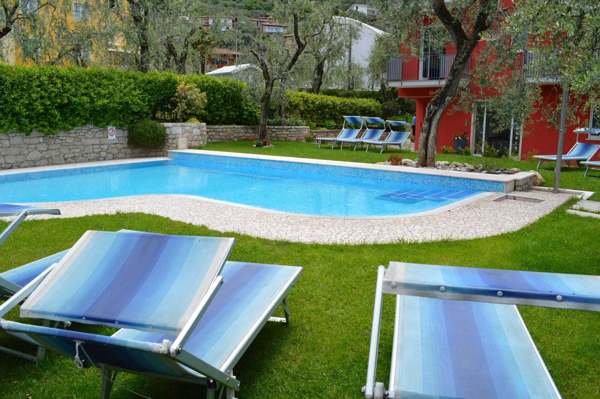 Residence La Pergola has a swimming pool with hydromassage corner, an olive grove garden with deck chairs, a large terrace overlooking the lake, a covered garage for motorcycles and bicycles, private car parking (max 1 car per apartment) and windsurf storage.